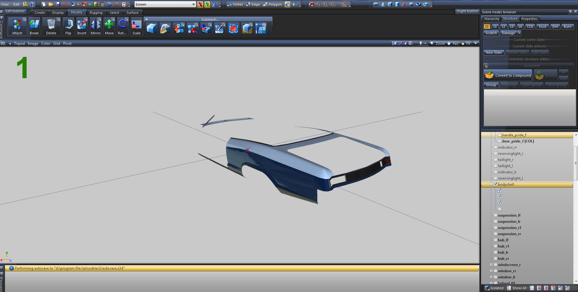 С выходом версии ZModeler 3.1.3 стала доступна работа с Mafia 2. В гайде будут описаны советы по конвертации автомобилей в mafia 2. Урок рассчитан на опытных пользователей. Введение Конвертация Для примера конвертации возьмем машину из GTA 5. Импортируйте машину (все LODы) со всеми необходимыми текстурами , далее будем её адаптировать и сохранять через Zmodeler 3. Поскольку Mafia2 использует только два уровня детализации (высокий и очень низкий), при конвертации деталей можно оставить наивысший (L0) и наименьший (обычно L3) LOD. Остальные можно удалить (выбрав в списке на объекте L1 или L2 и нажав маленькую кнопку «Del» в строке с кнопками «Convert to Compound» и «Dismiss»). Данное действие вычленит объект указанного уровня из compound-объекта, поэтому появившиеся объекты в иерархии (без имени) затем надо удалить правым кликом и пунктом меню Edit->Delete. (рис.1).