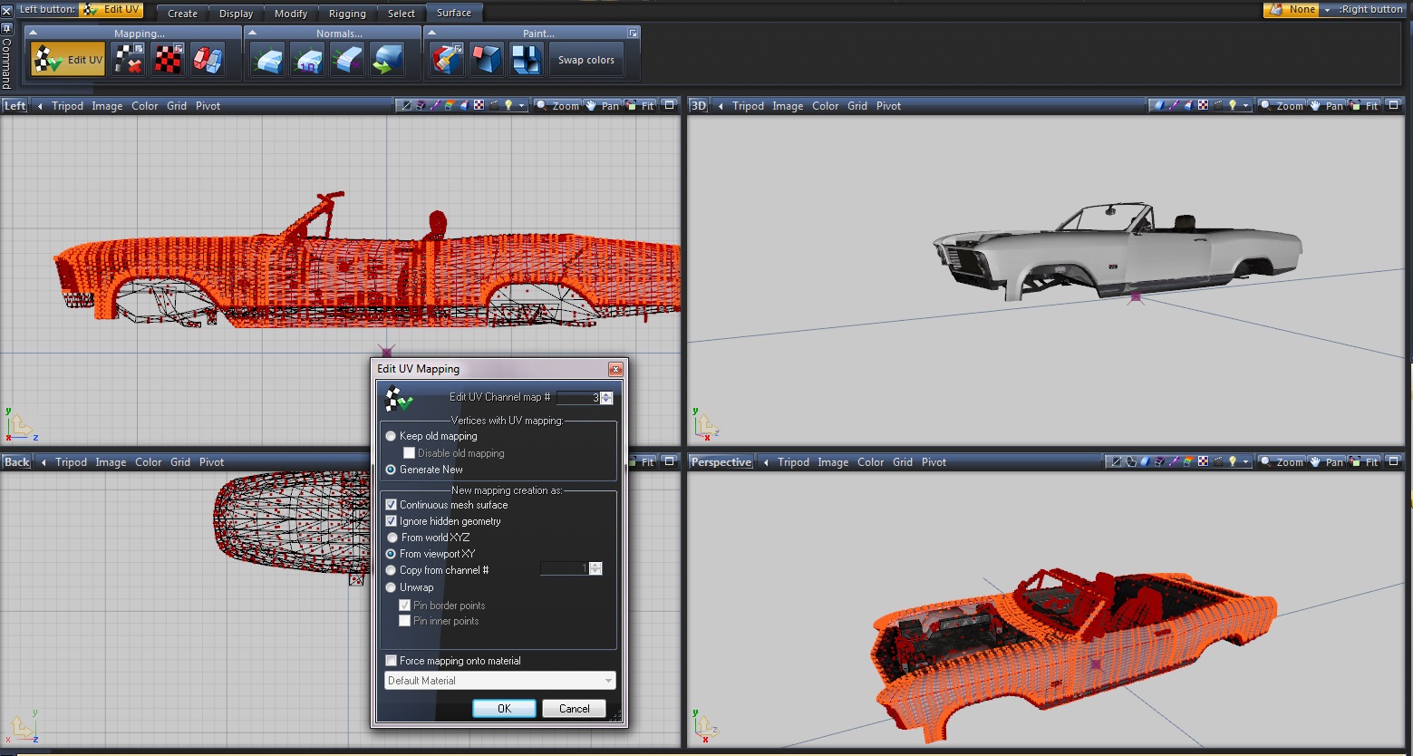 Мэппинг генерируем инструментом Surface\Mapping\Edit UV на нужном вами виде. В появившемся окне настроек установите 3 канал UV и «Generate New», также рекомендуется выключить «Continuous Mesh surface».