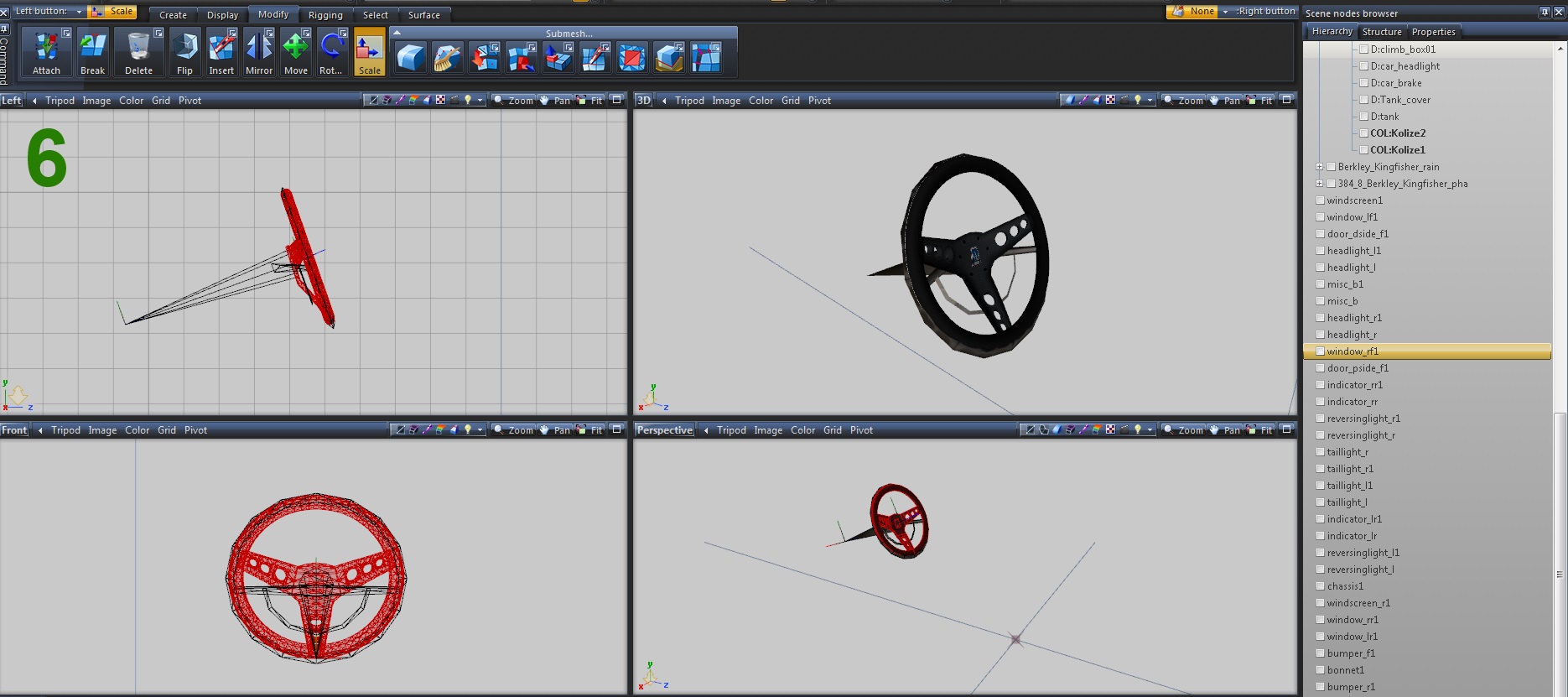 Если у вашей машины две двери, то и машину для замены ищите с двумя дверьми. Категорически запрещено удалять невостребованные детали из иерархии оригинальной модели. Неиспользуемые детали можно заменить простейшей геометрией (один маленький полигон и скрыть эту геометрию внутри кузова, или же просто сконвертировать объект в дамми ) (рис.5)